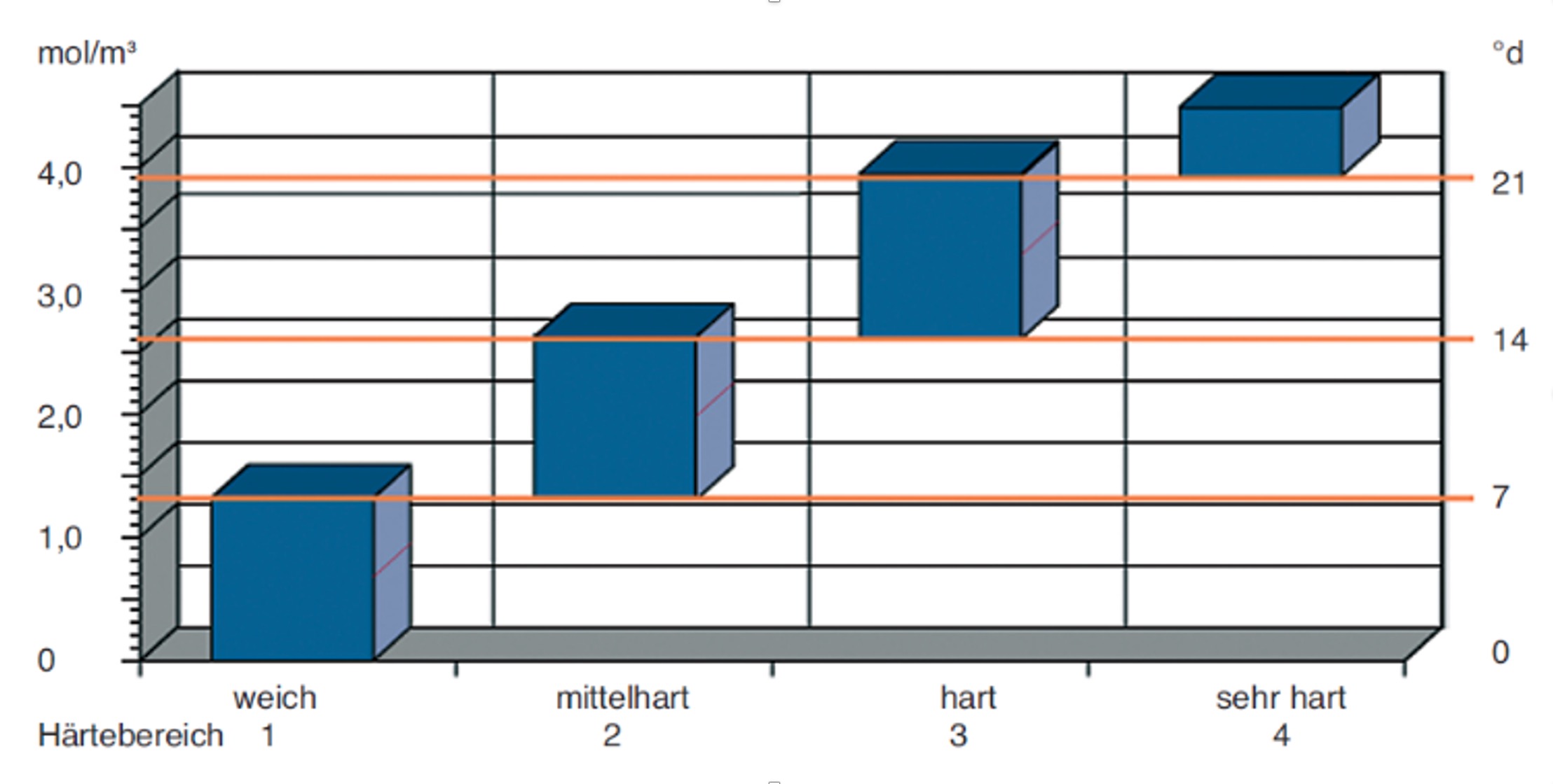 Von sehr kalkhaltigem, harten Wasser sprechen wir ab 14° dH. Hartes Wasser ist vor allem dann von Nachteil, wenn Wasser auf hohe Temperaturen erhitzt wird. Hohe Temperaturen (>55°C) fördern die Kalkausfällung. Z. B. bei hydraulischen Durchlauferhitzern oder Speichern. Elektronisch geregelte Durchlauferhitzer sind daher weniger anfällig für Kalk.