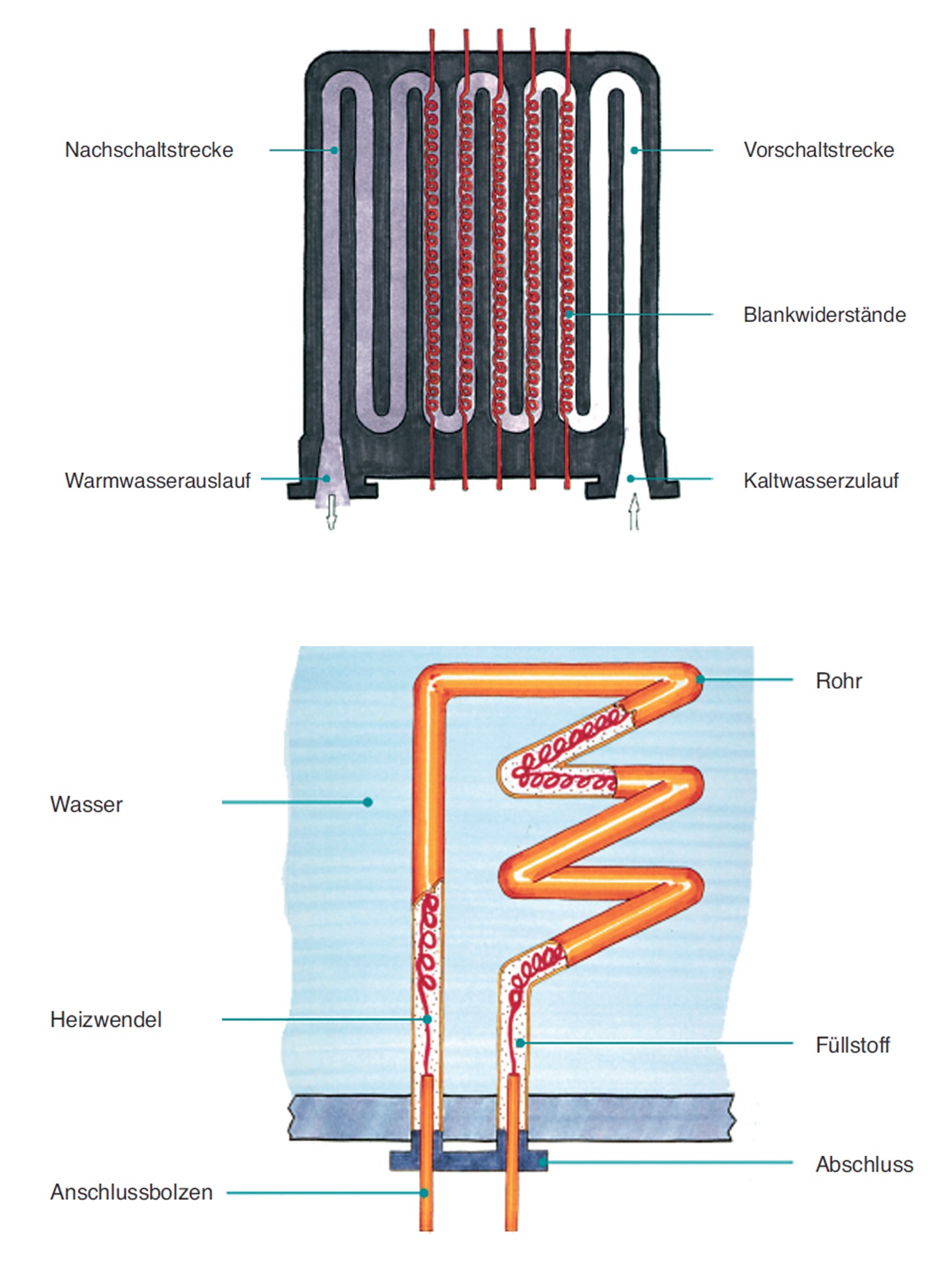 Elektrische Durchlauferhitzer mit Blankdraht-Heizelementen gelten als wartungsfrei und brauchen nicht entkalkt zu werden.