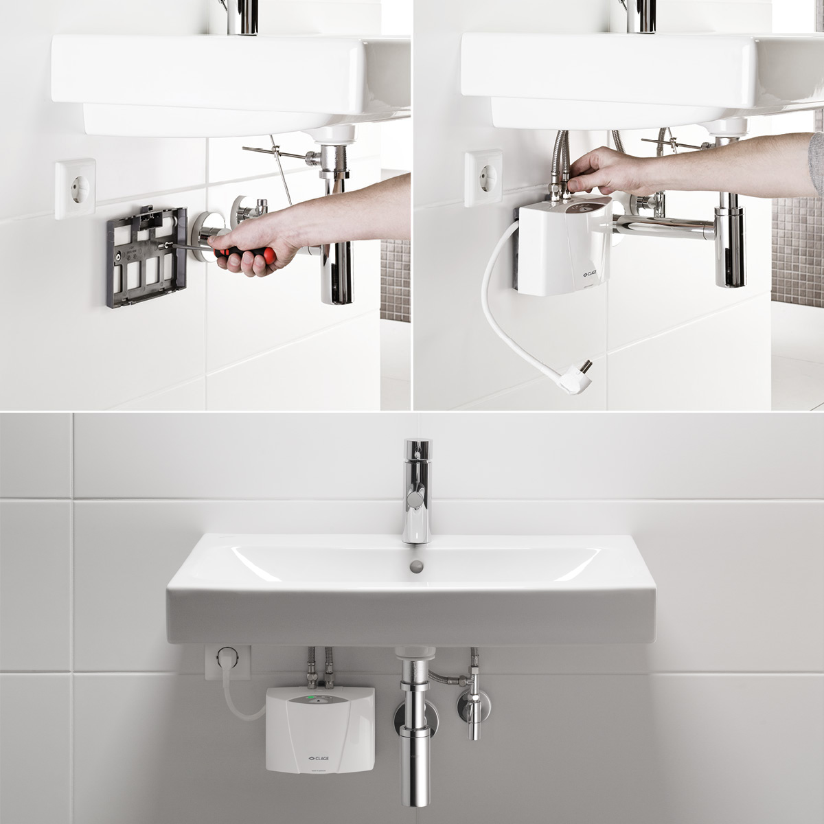The unvented E-mini instant water heater MBH is the energy-saving standard solution for installation with all conventional taps. The connecting kit is included for easy installation directly at the tap. And you’ll have warm water right away when you need it.