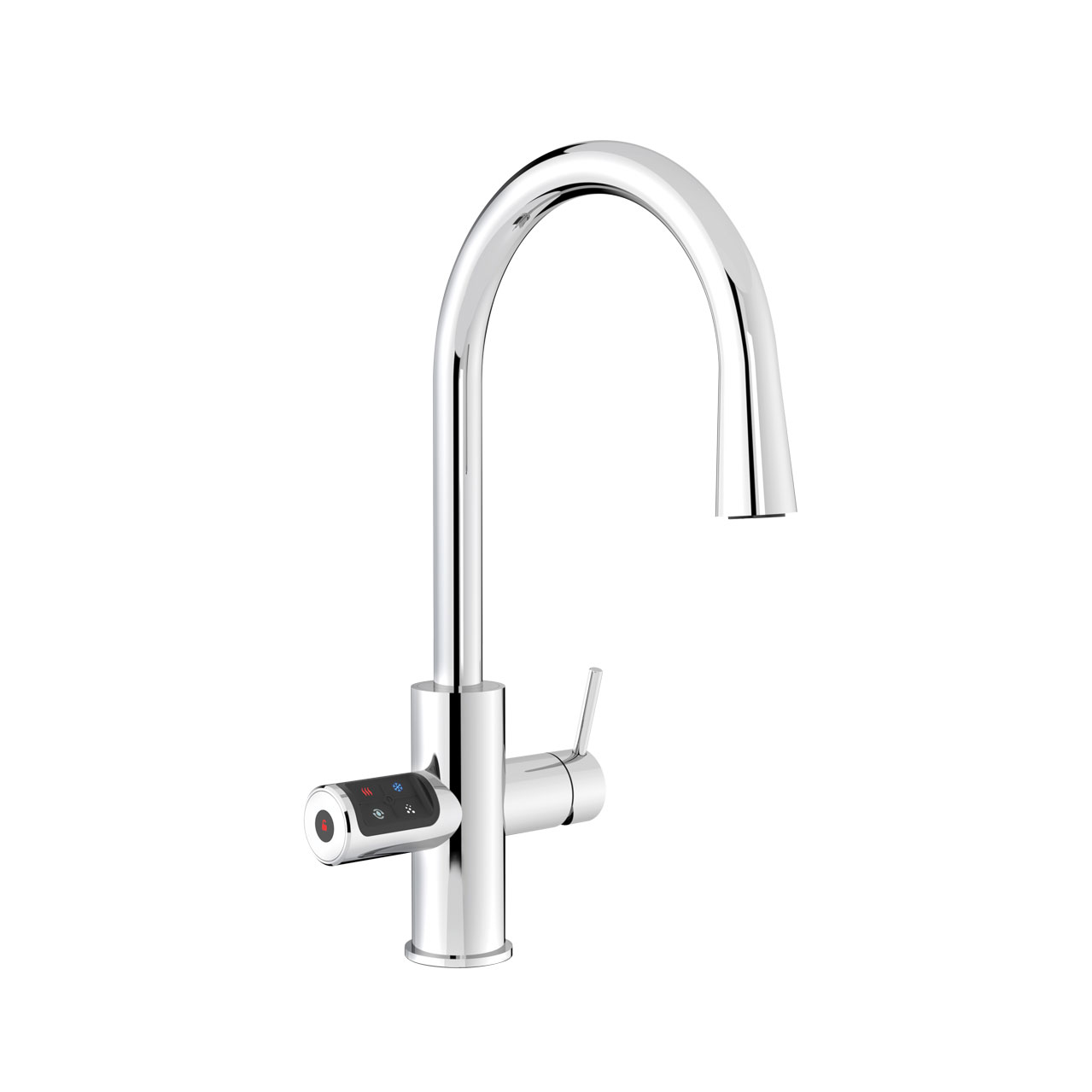 - Dwie opcje poboru wody: boczny przycisk do poboru wrzątku, schłodzonej lub gazowanej wody pitnej oraz jednouchwytowa bateria mieszaczowa do poboru zwykłej wody z kranu (z centralnego lub zdecentralizowanego źródła ciepłej wody)
